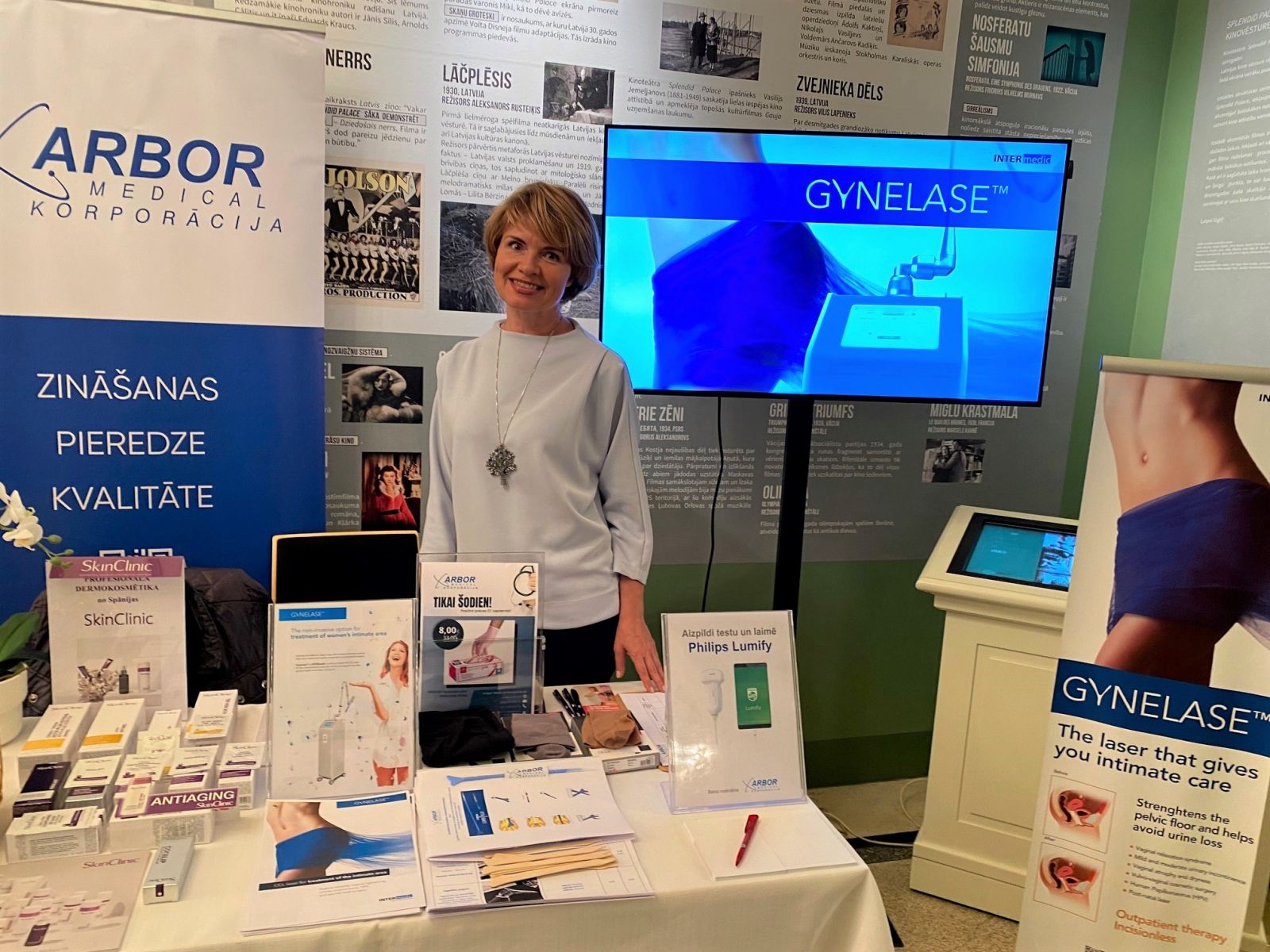 Savukārt mūsu kolēģe Eleanore Lāce klātesošos iepazīstināja ar kompānijas INTERmedic Laser and Light Solutions lāzeriekārtu Gynelase, profesionālo dermokosmētiku SkinClinic un citām tik nepieciešamajām precēm sievietes veselībai un labsajūtai.