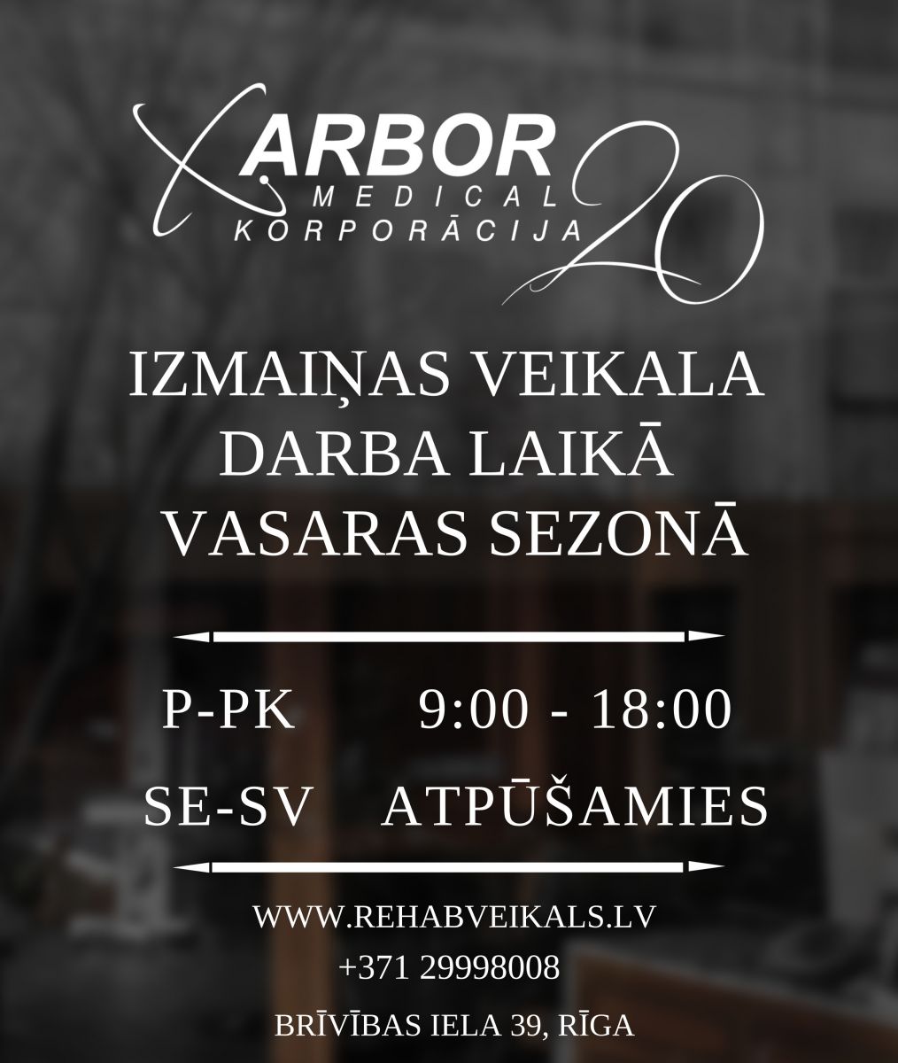 Informējam par izmaiņām fizioterapijas un rehabilitācijas preču konceptveikala darba laiku vasaras periodā no 1.jūnija līdz 1.septembrim!