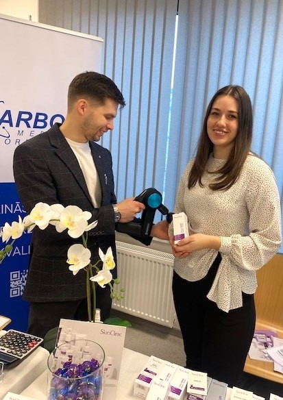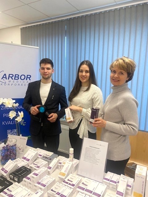 Arbor Medical Korporācija konferences ietvaros Annija Rātfeldere un Eleanora Lāce iepazīstināja ar jaunumiem no SkinClinic – Spānijā ražota dermokosmētika. Savukārt Artjoms Lukjanskis apmeklētājiem prezentēja ar Terabody ierīces – masāžas pistoles un citus atjaunošanās produktus.