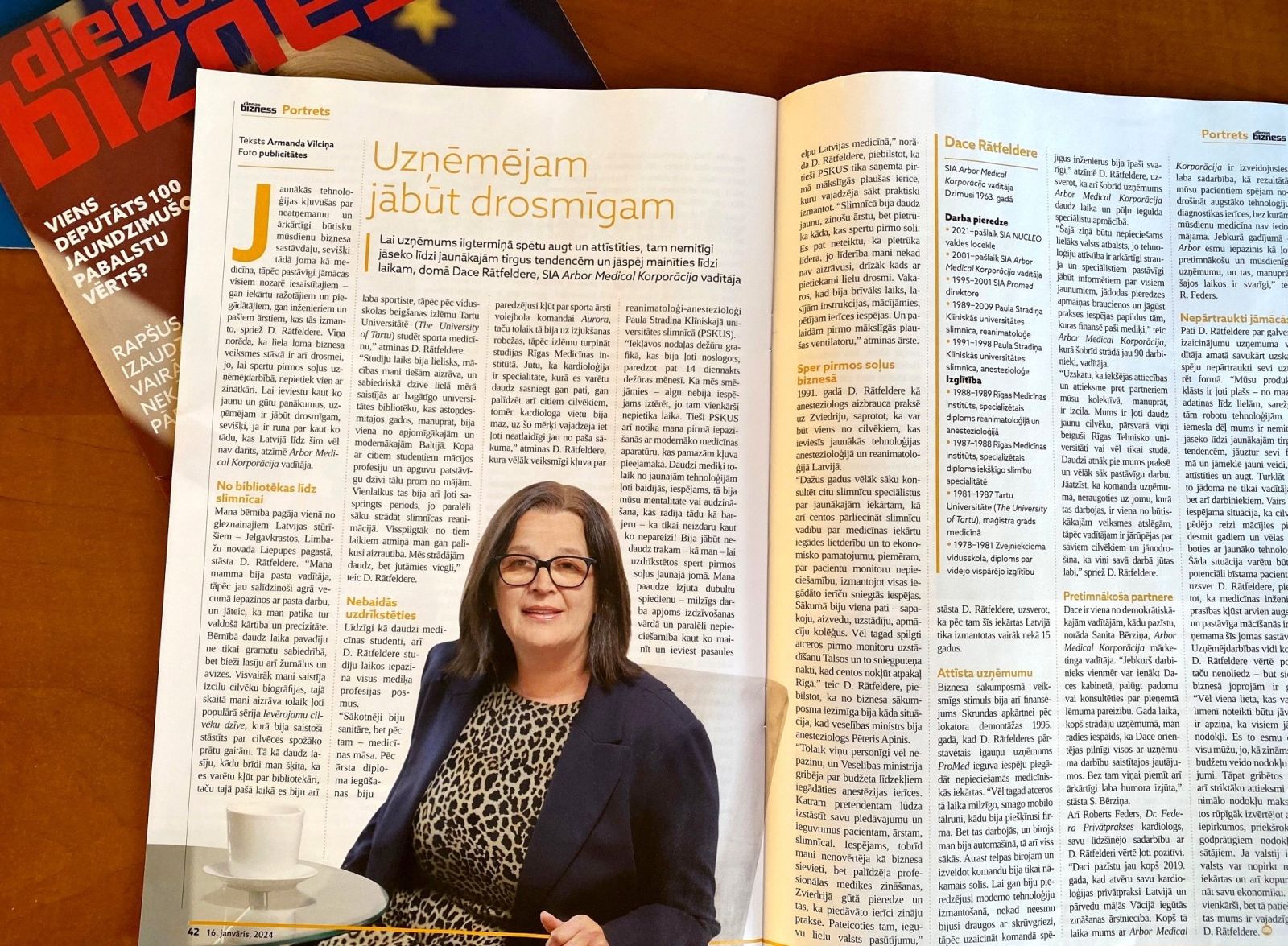 Tā 16. janvāra izdevuma Dienas Bizness intervijā min Arbor Medical Korporācija vades loceklē Dace Rātfeldere.