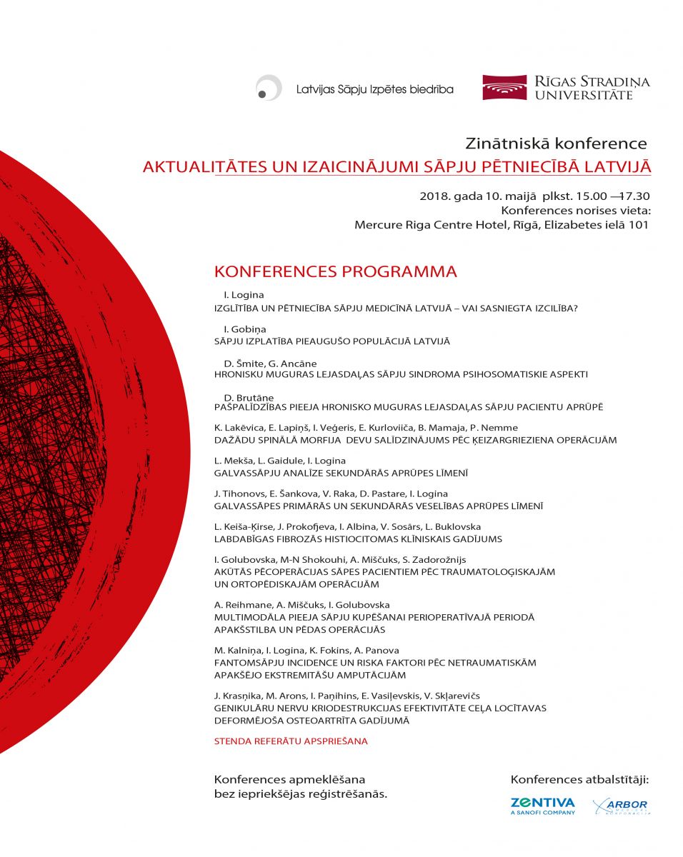 Zinātniskā konference "Aktualitātes un izaicinājumi sāpju pētniecībā Latvijā"