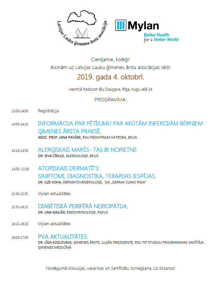 Latvijas Lauku ģimenes ārstu asociācijas sēde 4.oktobrī