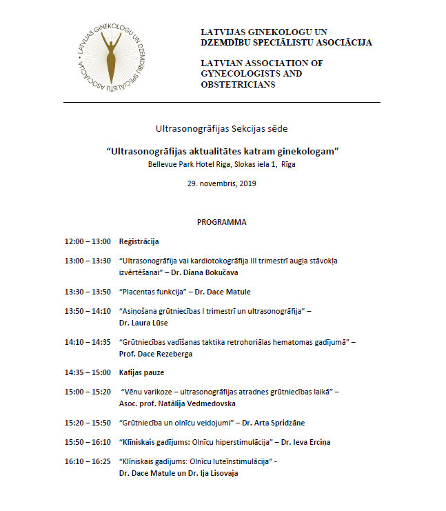 Ultrasonogrāfijas sekcijas sēde "Ultrasonogrāfijas aktualitātes katram ginekologam"