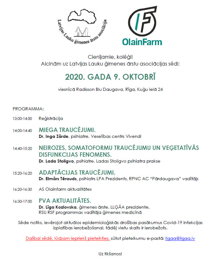 Latvijas Lauku ģimenes ārstu asociācijas sēde 9.oktobrī