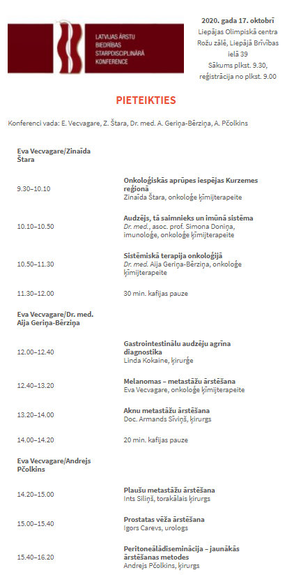 17.10.2020., Liepājā – konference “ONKOLOĢISKĀS APRŪPES ORGANIZĒŠANA LATVIJĀ”