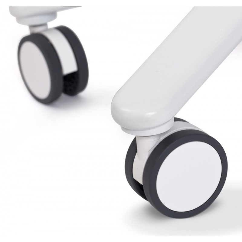 Piecu zvaigžņu pamatne nodrošina maksimālu stabilitāti, savukārt pašbloķējošie ritenīši garantē drošību – taburete nekustas, kamēr uz tās neapsēžas, bet sēžot kustas viegli un plūstoši. Daudzveidīgā krāsu izvēle un augstas kvalitātes polsterējums piešķir profesionālu izskatu un komfortu ikdienas darbā.
